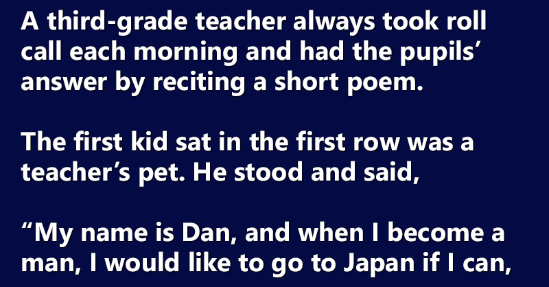 A third-grade teacher always took roll call each morning and had the pupils’ answer by reciting a short poem.