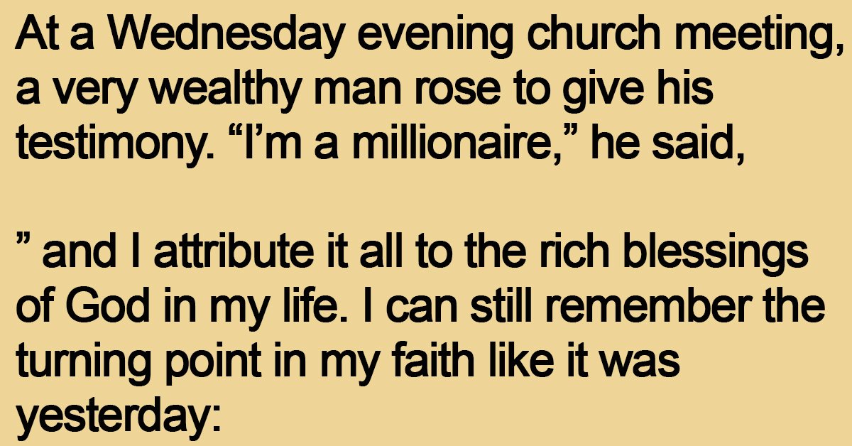At a Wednesday evening church meeting, a very wealthy man rose to give his testimony.