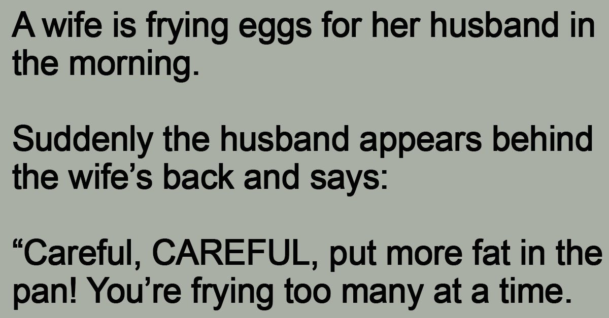The husband answers calmly:
