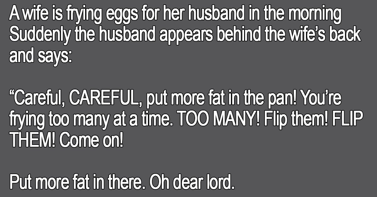 “What’s wrong with you? You think I can’t fry a few eggs?”
