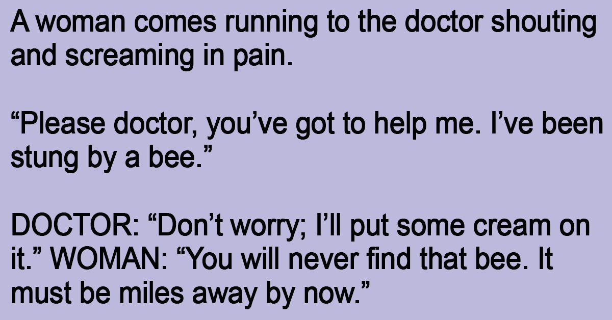 “Please doctor, you’ve got to help me. I’ve been stung by a bee.”