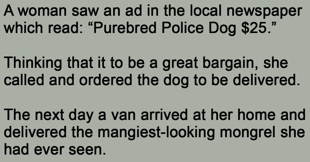 “Purebred Police Dog $25.”