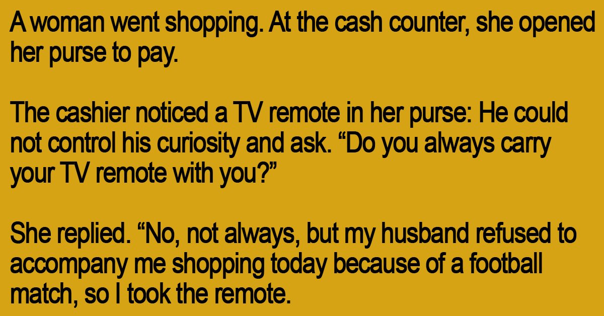 She replied. “No, not always, but my husband refused to accompany me shopping today because of a football match, so I took the remote.
