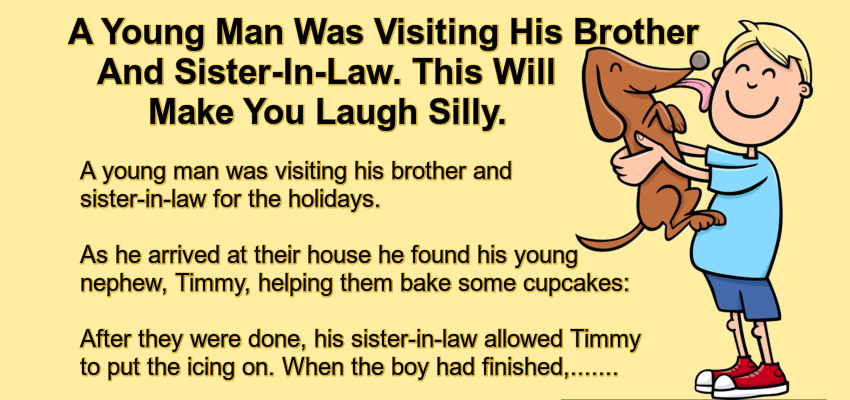A Young Man Was Visiting His Brother And Sister-In-Law. – April 17, 2022 by Kevin Adams Facebook Twitter Pinterest LinkedIn A young man was visiting his brother and sister-in-law for the holidays. As he arrived at their house he found his young nephew, Timmy, helping them bake some cupcakes: After they were done, his sister-in-law allowed Timmy to put the icing on. When the boy had finished, he brought them to the table. “The cupcakes look delicious, Tim.” his uncle said. He took a bite and said. “Timmy these are so good.” As he finished cupcake and took another, he again complimented his little nephew. “The cupcakes look beautiful, Tim,” his uncle said. “How did you get the icing so neat?” His nephew replied. “It was easy. I just licked them.” The uncle turned pale. He pointed to the plate of cupcakes. “You licked all of these?” Timmie replied. “Well no. After a while my tongue got tired, and I got the dog to help.” Facebook Twitter Pinterest LinkedIn