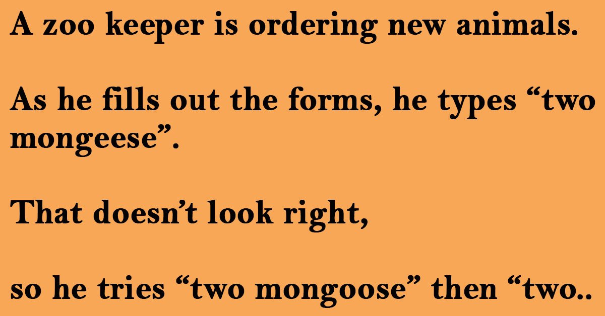 so he tries “two mongoose” then “two mongooses”.