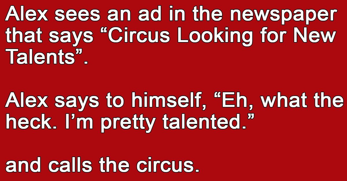 Alex sees an ad in the newspaper that says “Circus Looking for New Talents”.