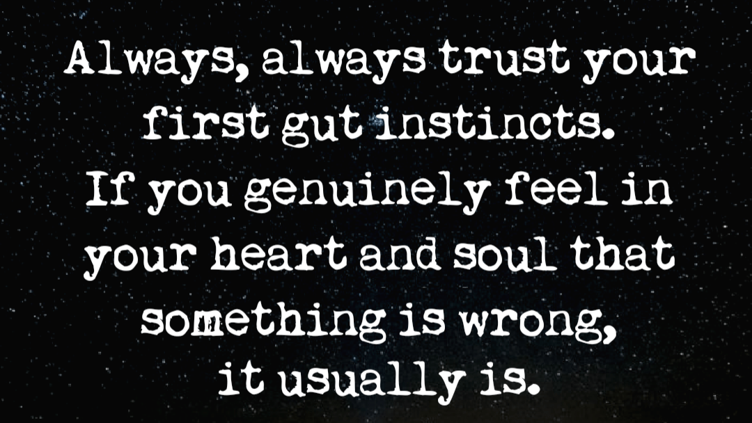 Always, trust your first gut instincts, they aren’t wrong. If you genuinely feel in your heart and soul that something is wrong, it usually is.