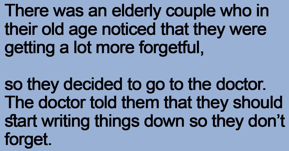 There was an elderly couple who in their old age noticed that they were getting a lot more forgetful,