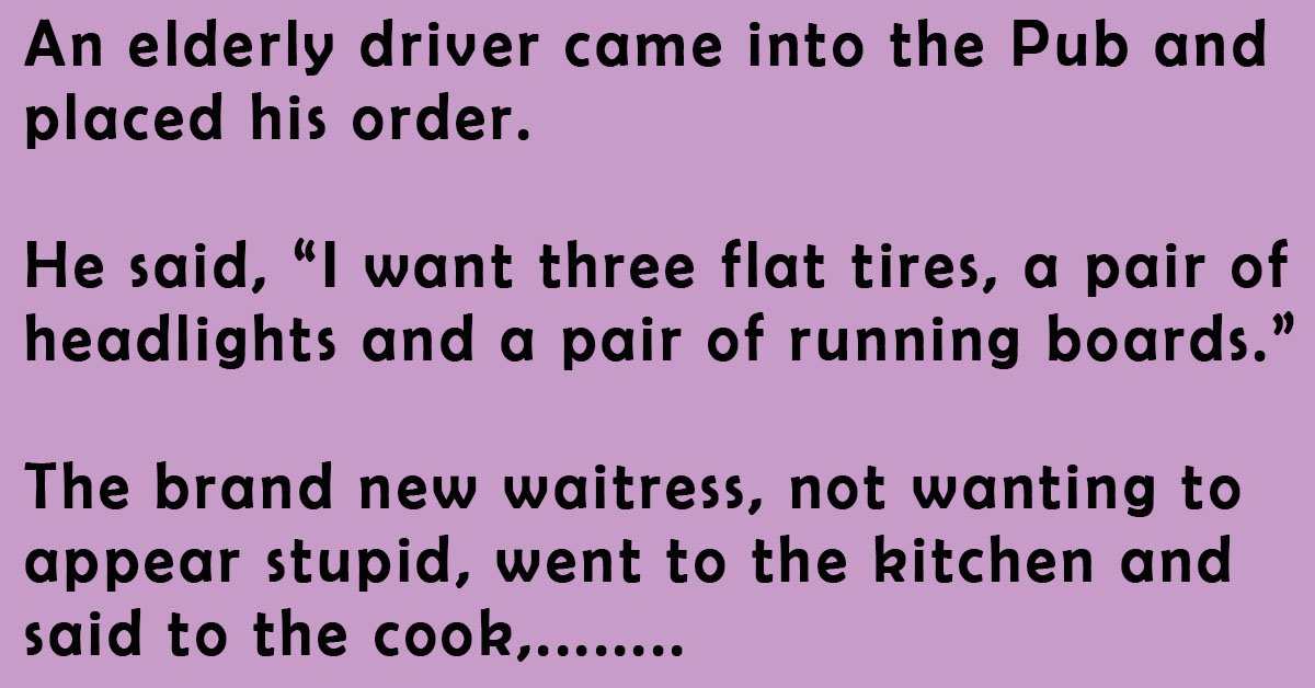 ‘Three flat tires… Mean three pancakes; a pair of headlights… Is two eggs sunny side up; and a pair of running boards… Are2 slices of crisp bacon!