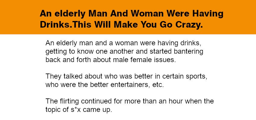 An elderly man and a woman were having drinks, getting to know one another and started bantering back and forth about male female issues.