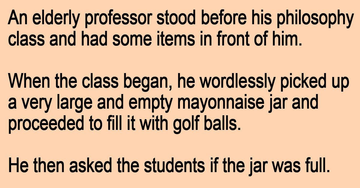 When the class began, he wordlessly picked up a very large and empty mayonnaise jar and proceeded to fill it with golf balls.