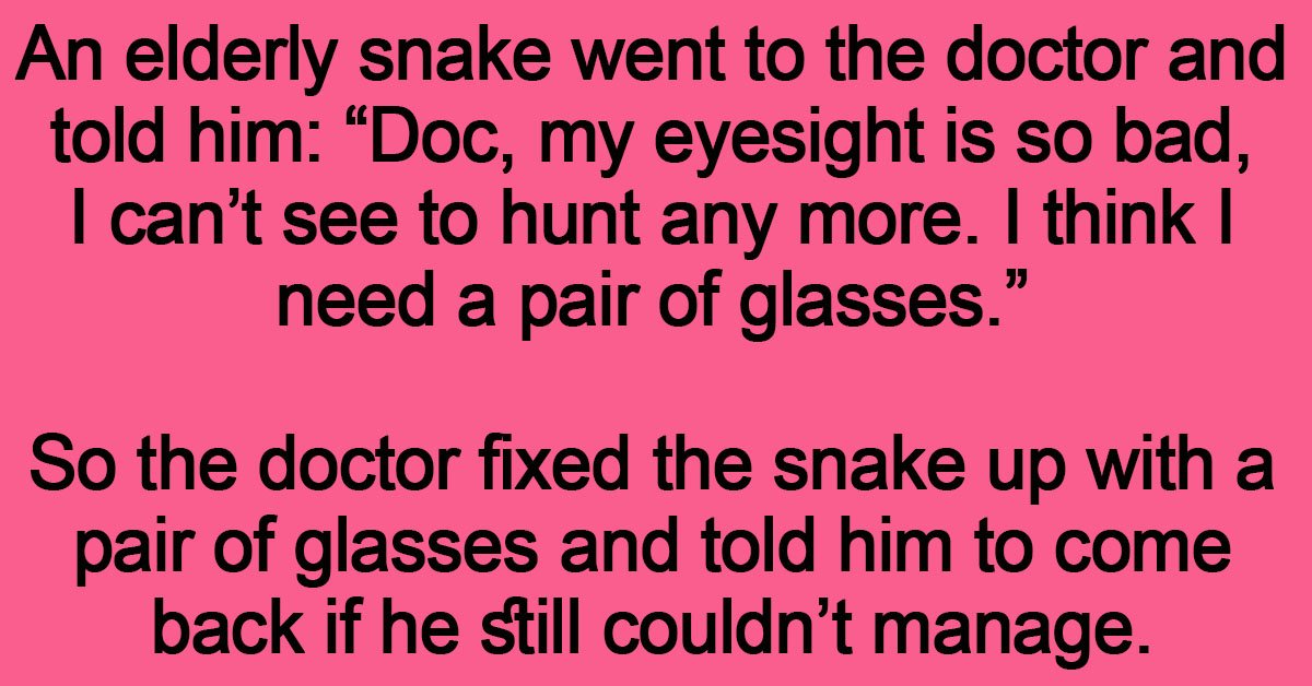 So the doctor fixed the snake up with a pair of glasses and told him to come back if he still couldn’t manage.