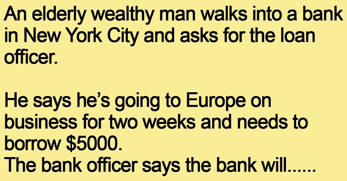 “Sir, I must tell you, we’re all a little puzzled. While you were away, we checked you out and discovered that you’re a multimillionaire. Why would you bother to borrow $5,000?”