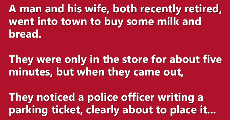 They noticed a police officer writing a parking ticket, clearly about to place it on their car.