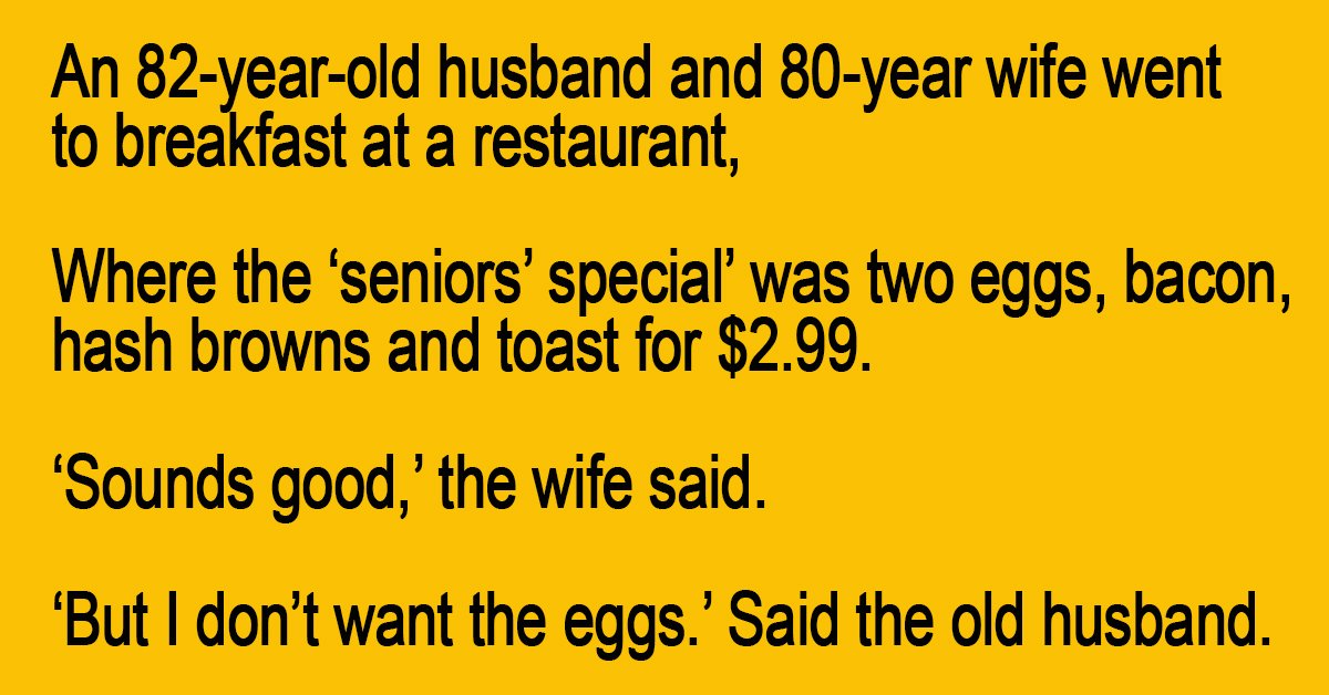 An 82-year-old husband and 80-year wife went to breakfast at a restaurant,