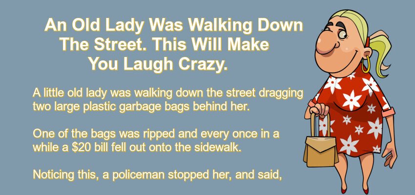 A little old lady was walking down the street dragging two large plastic garbage bags behind her.