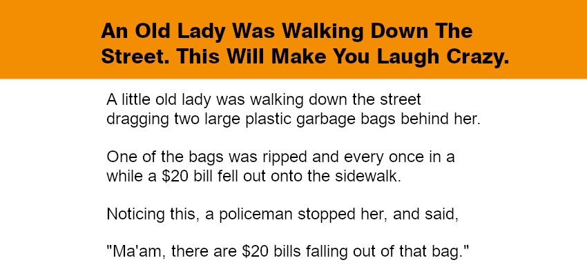 A little old lady was walking down the street dragging two large plastic garbage bags behind her.