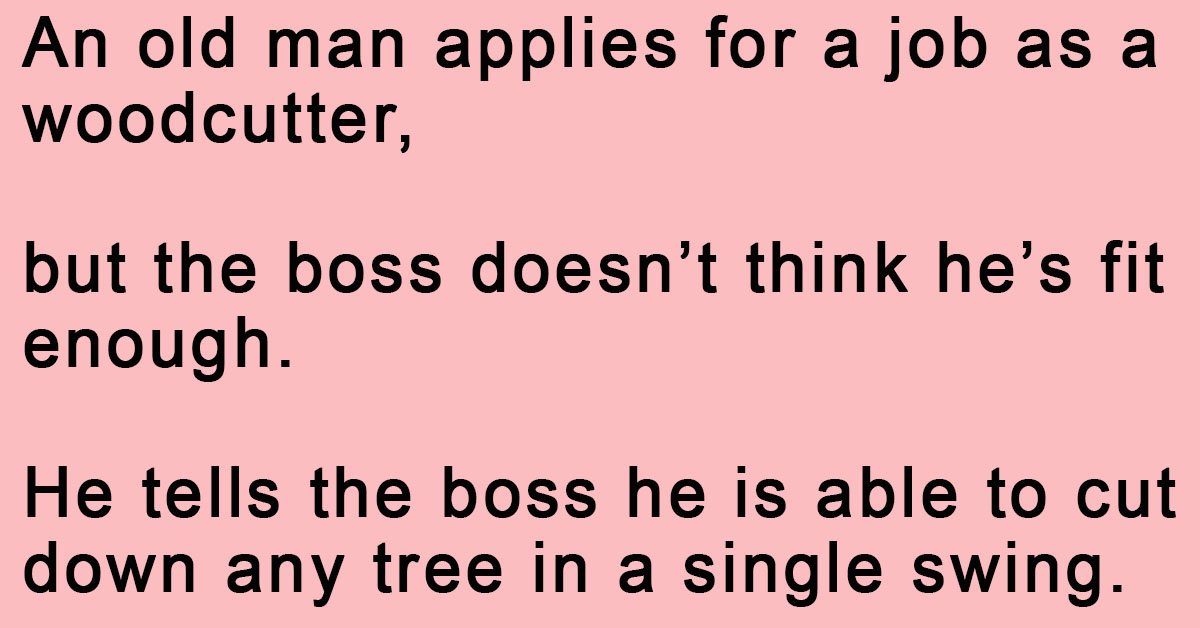 He tells the boss he is able to cut down any tree in a single swing.