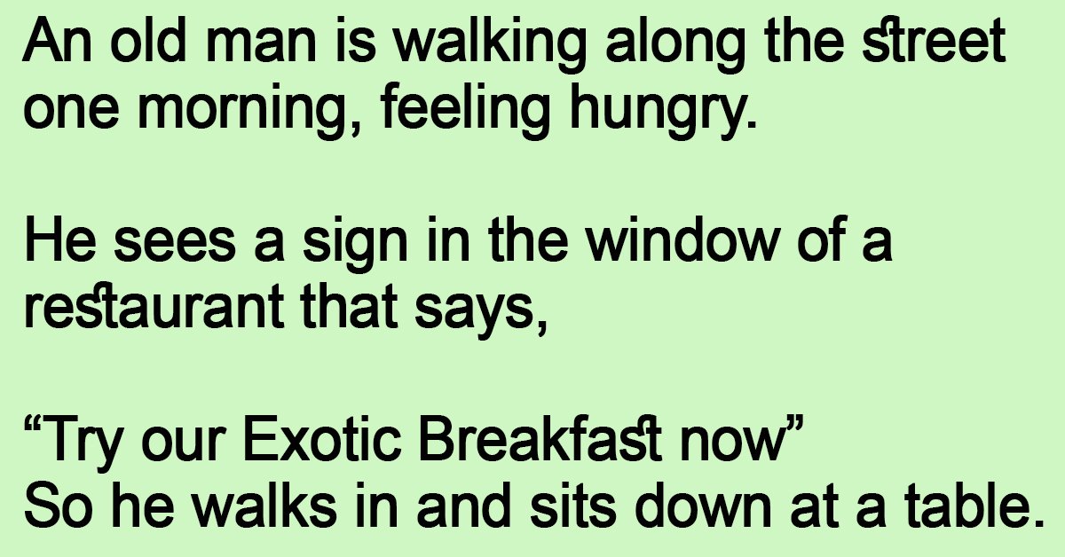 The old man asks, “What’s your Exotic Breakfast?”