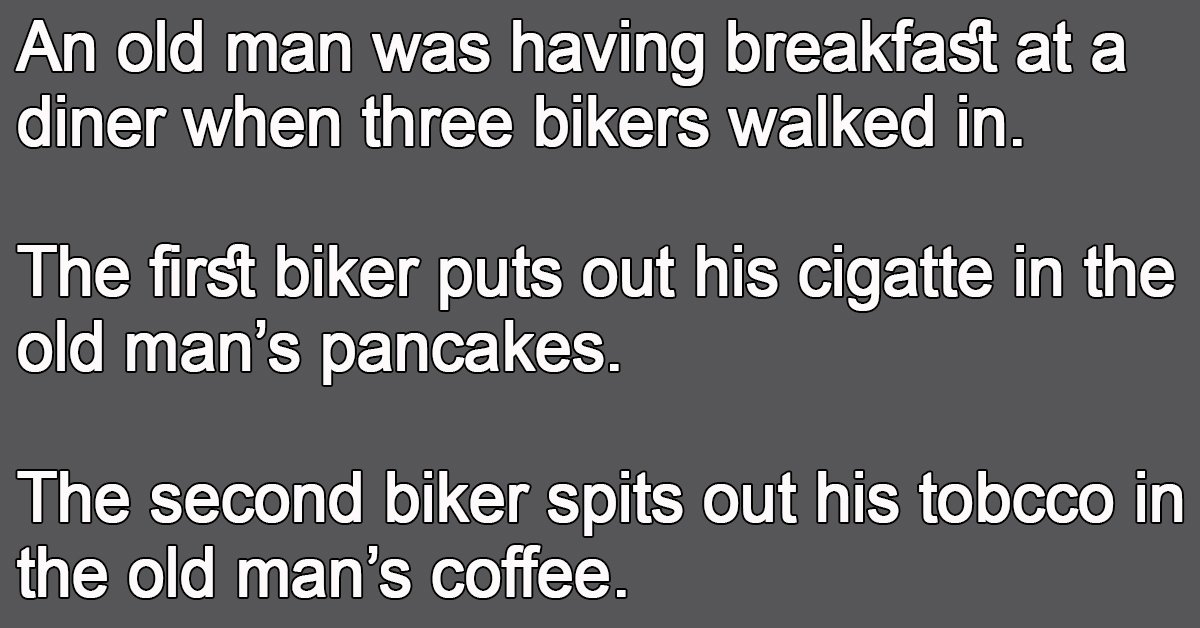 An old man was having breakfast at a diner when three bikers walked in.