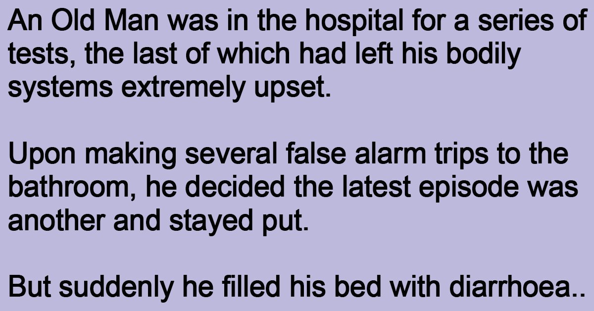 An Old Man was in the hospital for a series of tests, the last of which had left his bodily systems extremely upset.