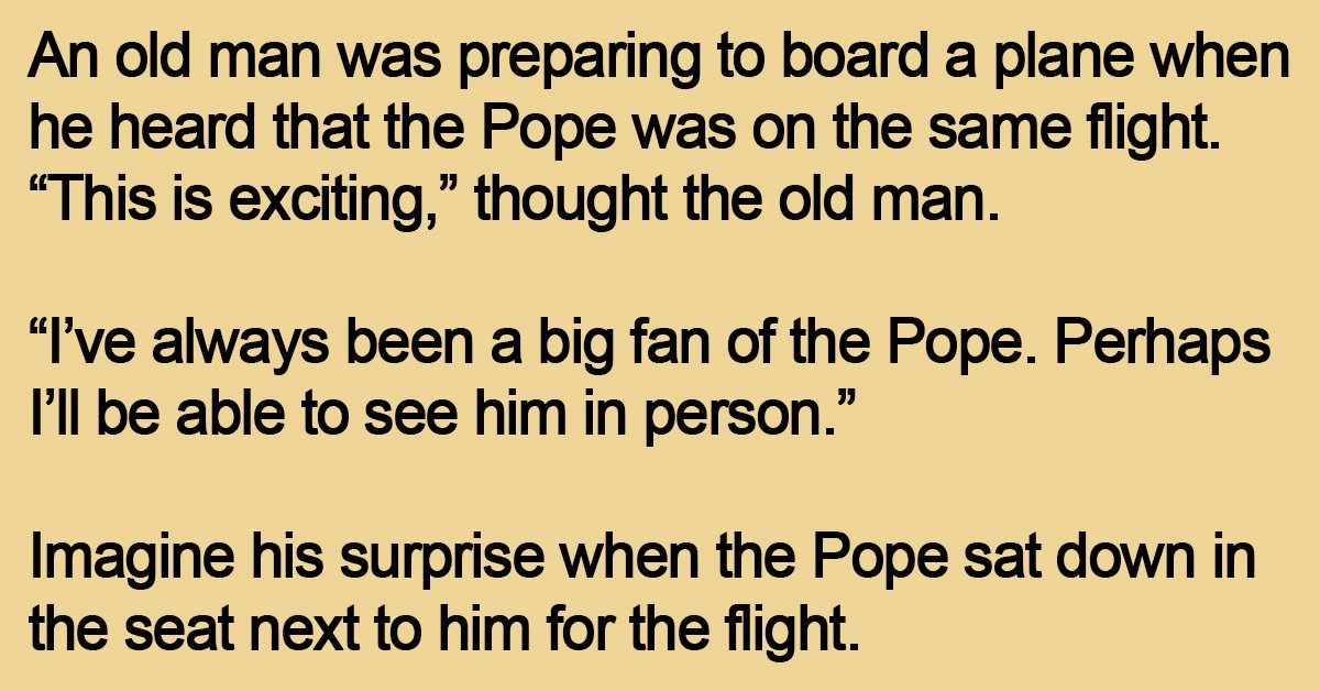 An old man was preparing to board a plane when he heard that the Pope was on the same flight.