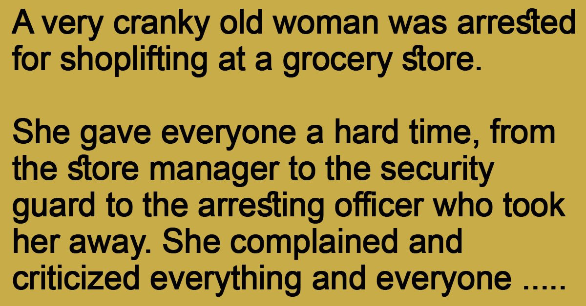 A very cranky old woman was arrested for shoplifting at a grocery store.