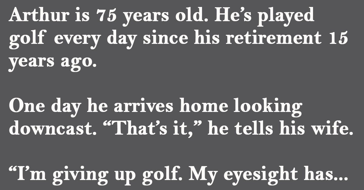 “I’m giving up golf. My eyesight has become so bad that once I hit the ball I couldn’t see where it went.”