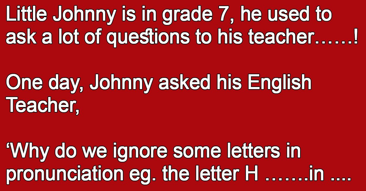 Little Johnny is in grade 7, he used to ask a lot of questions to his teacher……! One day, Johnny asked his English Teacher, ‘Why do we ignore some letters … …