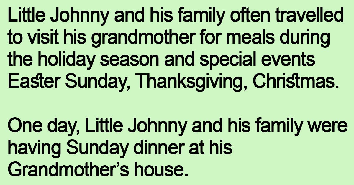 Little Johnny and his family often travelled to visit his grandmother for meals during the holiday season and special events Easter Sunday, Thanksgiving, Christmas. One day, Little Johnny and his … …