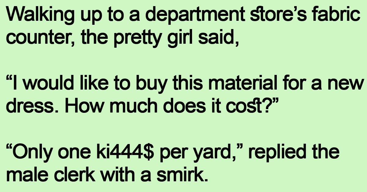 Walking up to a department store’s fabric counter, the pretty girl said, “I would like to buy this material for a new dress. How much does it cost?” “Only one … …