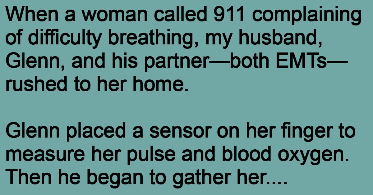 When a woman called 911 complaining of difficulty breathing, my husband, Glenn, and his partner—both EMTs—rushed to her home. Glenn placed a sensor on her finger to measure her pulse … …