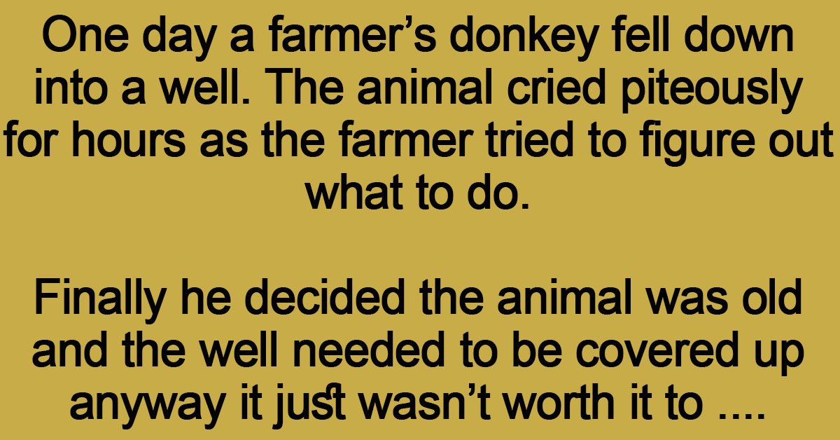 One day a farmer’s donkey fell down into a well. The animal cried piteously for hours as the farmer tried to figure out what to do. Finally he decided the … …