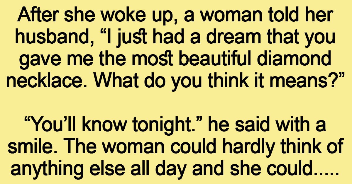 After she woke up, a woman told her husband, “I just had a dream that you gave me the most beautiful diamond necklace. What do you think it means?” “You’ll … …