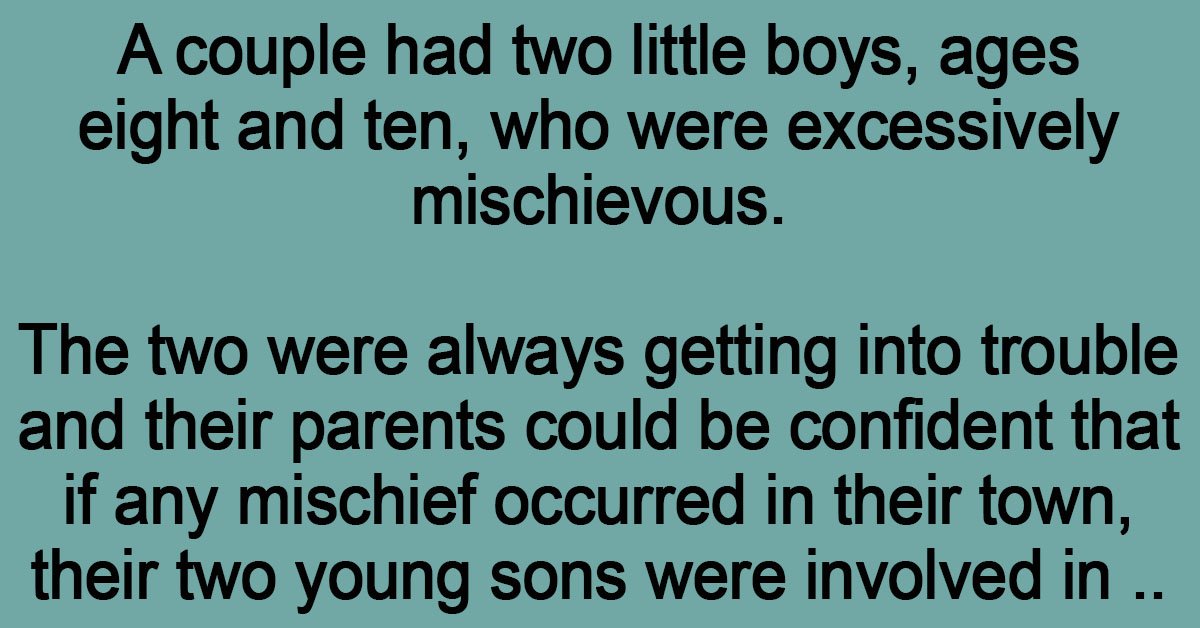 A couple had two little boys, ages eight and ten, who were excessively mischievous. The two were always getting into trouble and their parents could be confident that if any … …