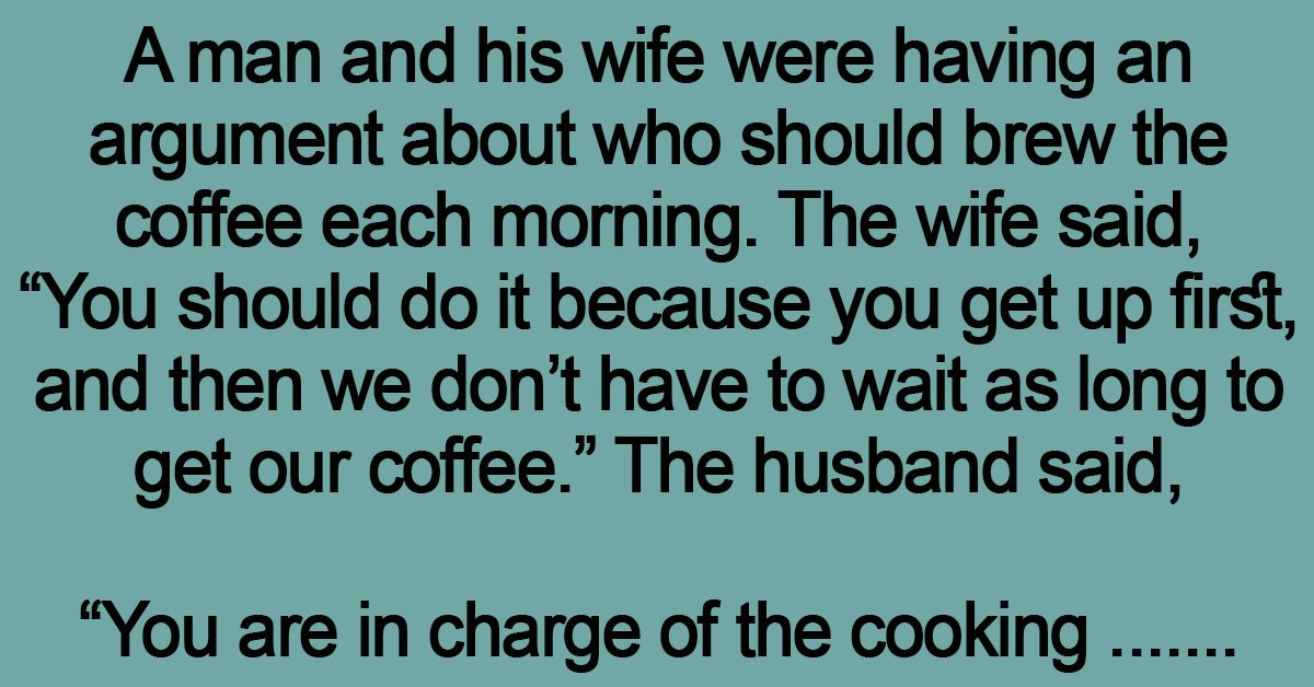 A man and his wife were having an argument about who should brew the coffee each morning. The wife said, “You should do it because you get up first, and … …