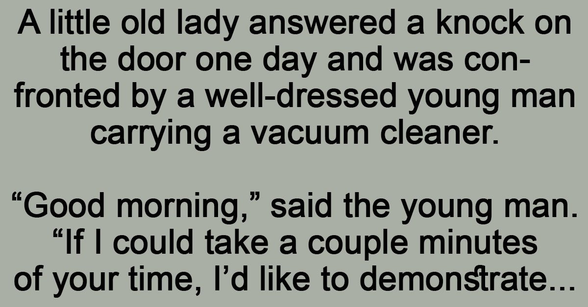 A little old lady answered a knock on the door one day and was confronted by a well-dressed young man carrying a vacuum cleaner. “Good morning,” said the young man. … …