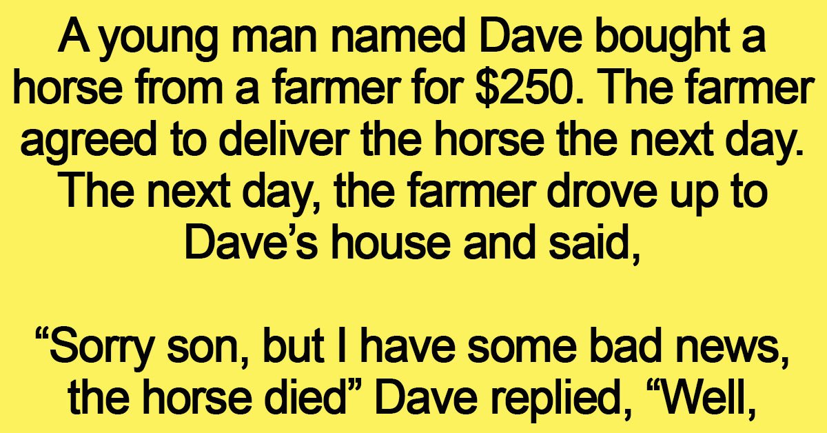 A young man named Dave bought a horse from a farmer for $250 The farmer agreed to deliver the horse the next day. The next day, the farmer drove up … …