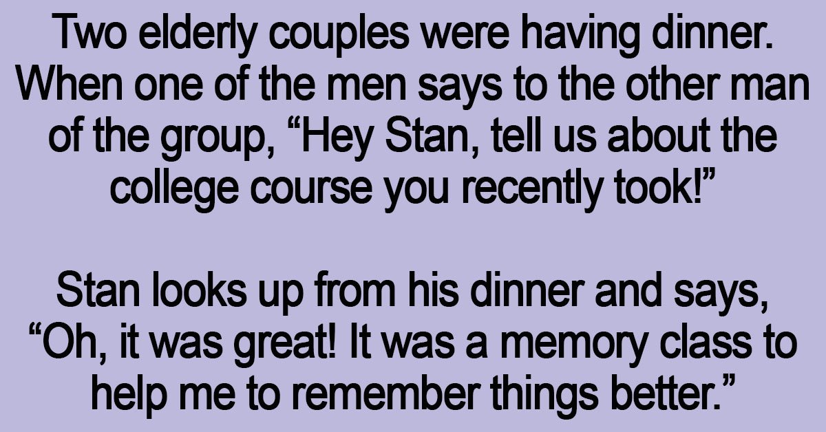 Two elderly couples were having dinner. When one of the men says to the other man of the group, “Hey Stan, tell us about the college course you recently took!” … …