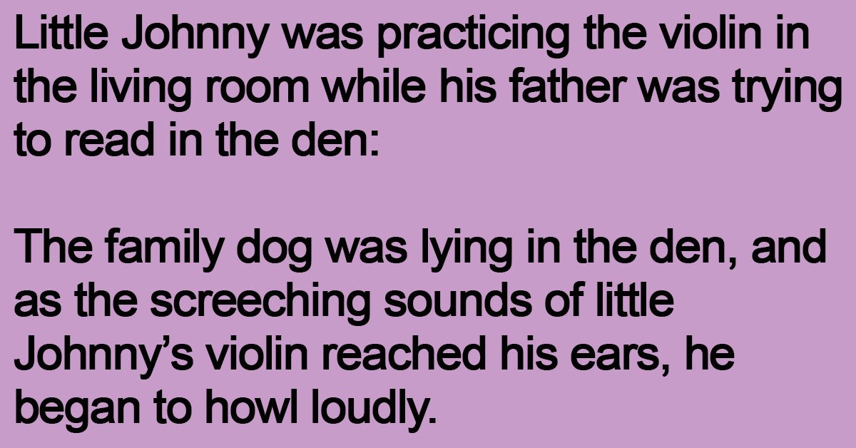 Little Johnny was practicing the violin in the living room while his father was trying to read in the den: The family dog was lying in the den, and as … …