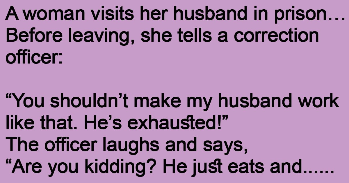 A woman visits her husband in prison… Before leaving, she tells a correction officer: “You shouldn’t make my husband work like that. He’s exhausted!” The officer laughs and says, “Are … …