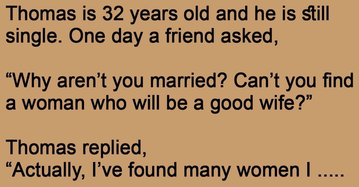 Thomas is 32 years old and he is still single. One day a friend asked, “Why aren’t you married? Can’t you find a woman who will be a good … …