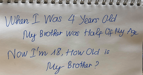 Can You Solve This Math Puzzle? When I Was 4 Years Old My Brother Was Half Of My Age. Now I’m 18, How Old Is My Brother?