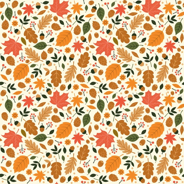 The image is made up of a colourful array of acorns and leaves, whilst a spiky smile hides within the captivating design.
