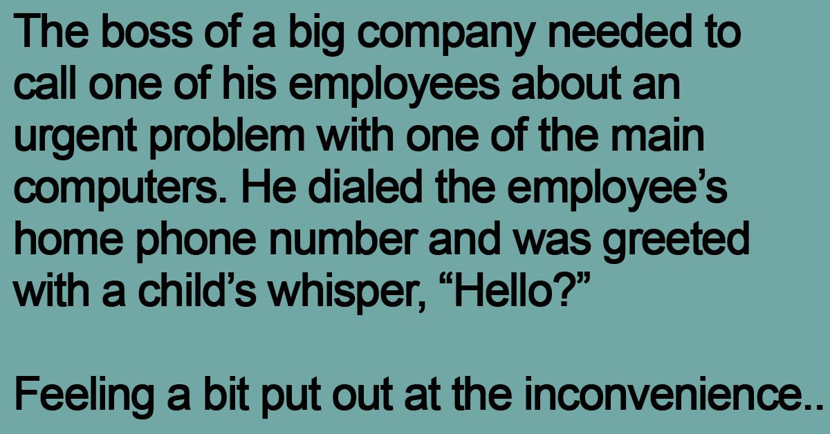 The boss of a big company needed to call one of his employees about an urgent problem with one of the main computers. He dialed the employee’s home phone number and was greeted with a child’s whisper, “Hello?”