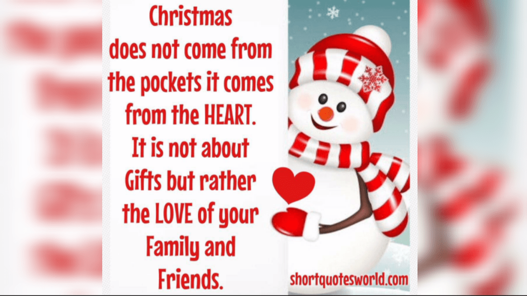 Christmas does not come from the pockets it comes from the HEART. It is not about Gifts but rather the LOVE of your Family and Friends.