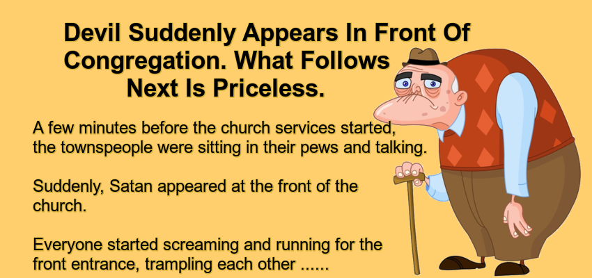 Suddenly, Satan appeared at the front of the church.