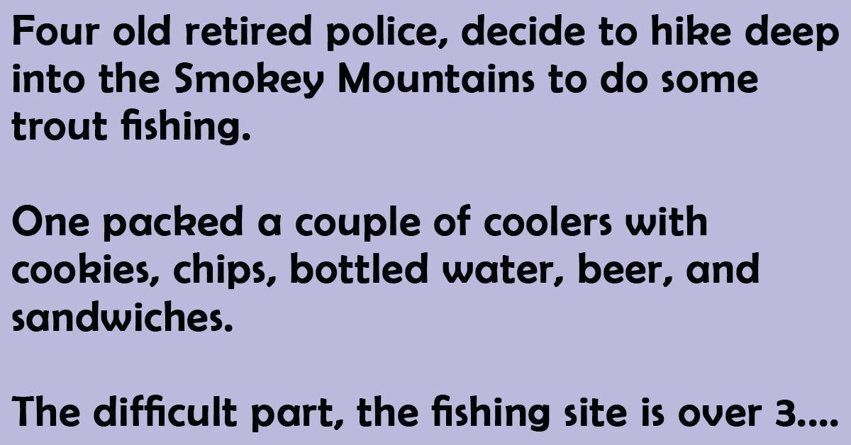 Four old retired police, decide to hike deep into the Smokey Mountains to do some trout fishing.