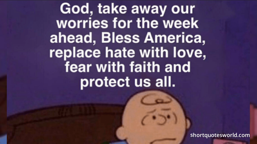 God, take away our worries for the week ahead, Bless America, replace hate with love, fear with faith and protect us all.