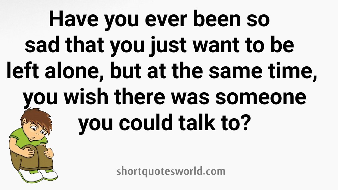 Have you ever been so sad that you want to be left alone, but at the same time you wish there was somebody to talk to?